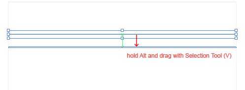 Si se haga zoom, alejar y compruebe si la línea azul tiene el ancho que desea tener en proporciones con el papel; Mantenga pulsada la tecla Alt y arrastre el rectángulo azul con la herramienta Selección (V) para duplicarlo. Suelte los botones cuando usted conseguir el espacio deseado entre las líneas. Por favor ver foto #3