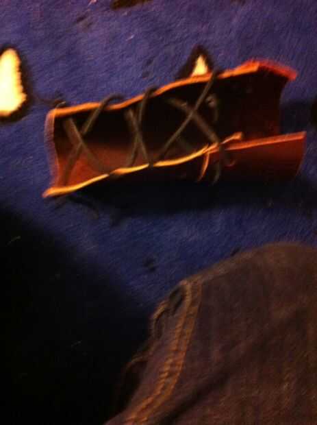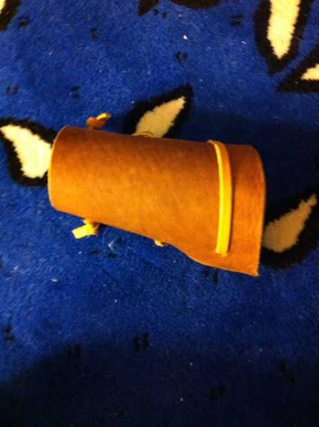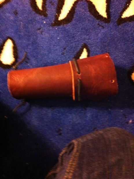 para hacer un par de guantes de cuero para mi assassins creed inspirado traje de que corto el cuero en forma de medio hexágono pero mucho más largo que se adapta a mi brazo envuelto alrededor de él y perforado de agujeros en los bordes para poner el cordón de cuero a través