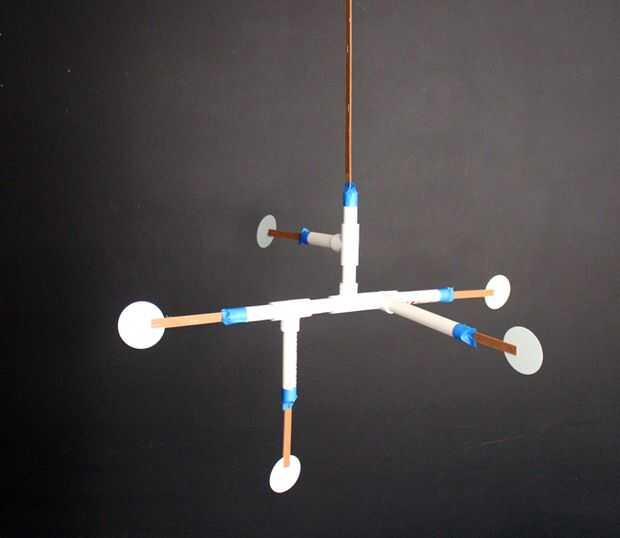 Ahora para el diseño. Comenzamos con una cinta métrica, tubería PVC, cinta y cartulina para armar rápidamente un par de colgantes de plantilla/prototipo.