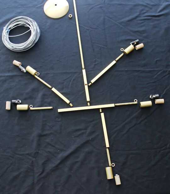 - El principio de momentos: cuando un objeto está equilibrado (en equilibrio) la suma de los momentos en sentido horario es igual a la suma de los momentos en sentido antihorario. Como un subibaja, la suma de todos los momentos (momento = fuerza épocas distancia del pivote) por un lado debe ser igual a la suma de momentos en el otro. Así que he añadido los momentos de cada componente en cada lado (pesaba cada pieza y centro de gravedad un factor), juega con distancias y terminó para arriba con un diseño que sostendría. Todo esto era ver si teníamos que ajustar donde a lo largo de la tubería horizontal para perforar los agujeros para los brazos. Diseño final no estaba totalmente equilibrado, pero fue lo suficientemente cerca para que presentimiento era que en combinación con la instalación rígida, se cuelga de manera vertical. Lo que hizo.