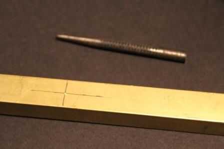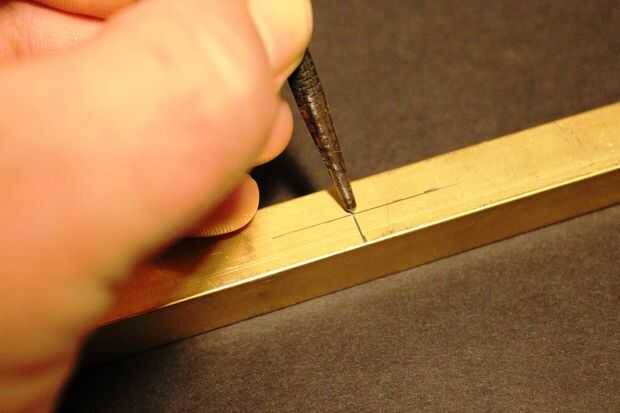 - b) haciendo mella centrado con un metal punch/martillo a la broca más pequeña en la muesca