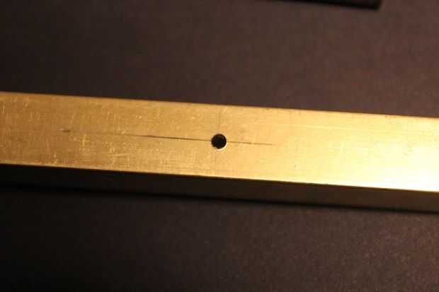 La siguiente tarea fue perforar los agujeros en los lados de cada cuadrado de la pipa donde tubo otro tope contra él.