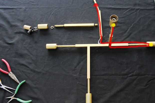 Y ahora Repita para el otro colgante, que fue mucho más rápido! Cuando lo han hecho, temporalmente alambré el colgante a un enchufe de pared, sólo para asegurarse de que funcionaba antes de instalar en el techo. ¡ Hurra.
