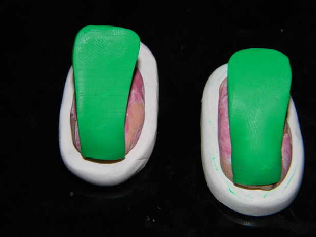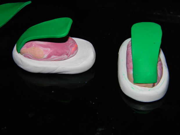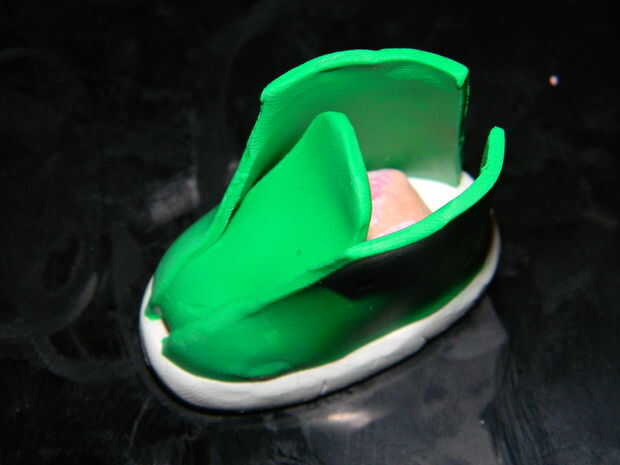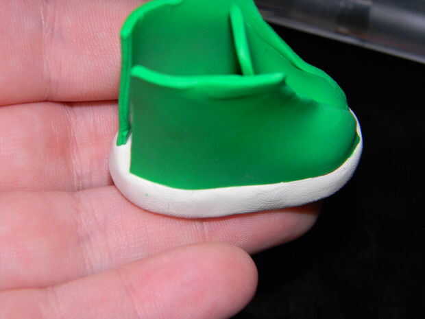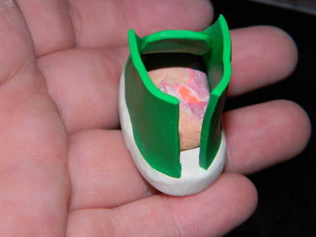 Entonces un pequeño trozo de arcilla de chatarra y hacerlo en un pequeño montículo, esto hará que sea así a no contraer la puntera de su zapato, si quieres zapatos hueco todo el camino a través de ti puede poner papel aluminio libremente dentro y sacar después de la cocción. Si tienes problemas para mantener arriba a los lados del zapato puede hacer todo pequeño pie forma de poner en el zapato para moldearlo alrededor de él.