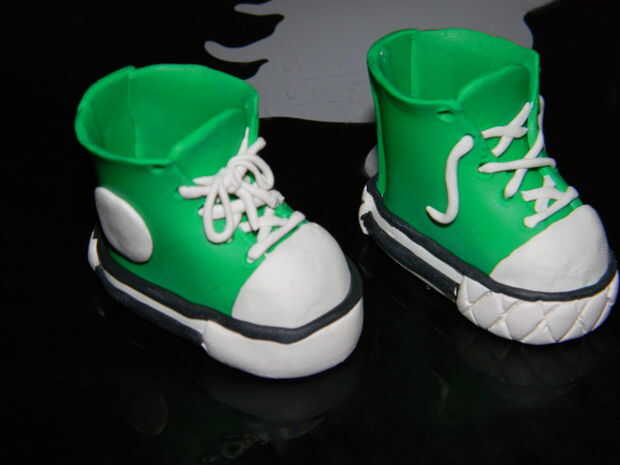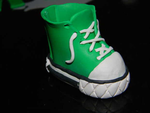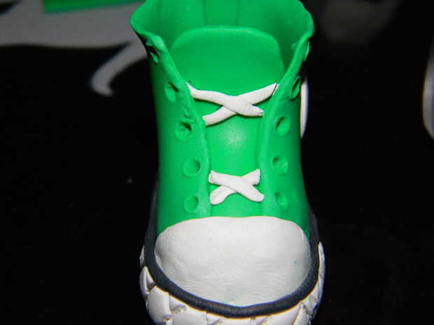 A continuación hacer los cordones superior, para el realismo que suelo tener un cordón recto en los dos ojales de la parte inferior y el resto se cruzan, empujar el extremo de los cordones en los ojales con todo lo que usaste para hacerlos.