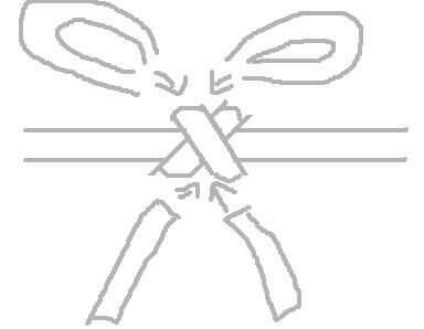 Para cordones atados, cruzadas dos pedazos pequeños para hacer el nudo, hacer dos bucles y pegarlas al nudo y dos sueltos los extremos del palillo de la parte inferior, sujete los lados del cordón principal en los ojales. Los lazos deben caer hacia abajo como verdaderos cordones.