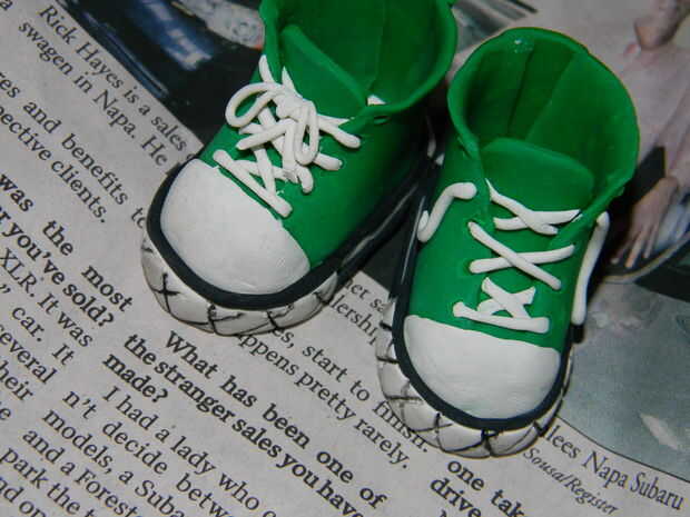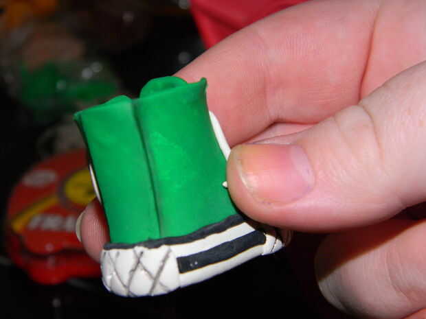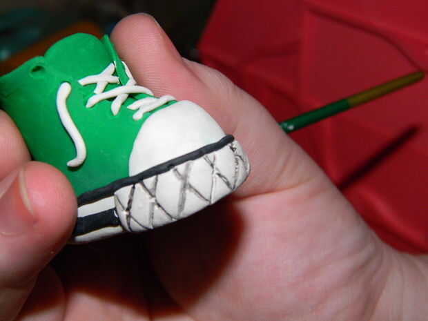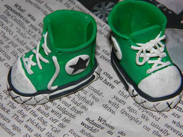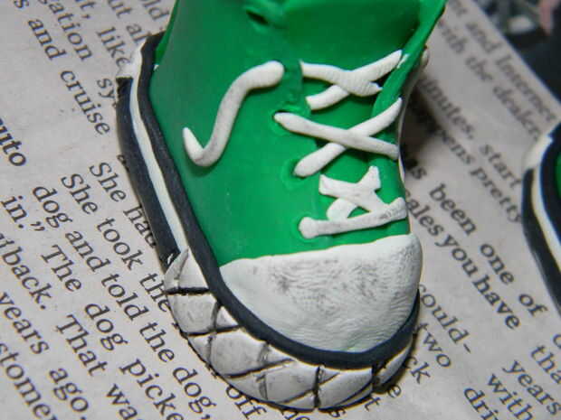 Después de que la pintura seque tengo un pedazo grande de periódico y frota todo los zapatos, la tinta del periódico frota en los zapatos haciendo que se vean sucios y viejos. Para esto también puede utilizar tonos pastel y hacer que se vean más sucia usando pasteles y todo. El periódico se muestra sobre todo en las partes blancas.