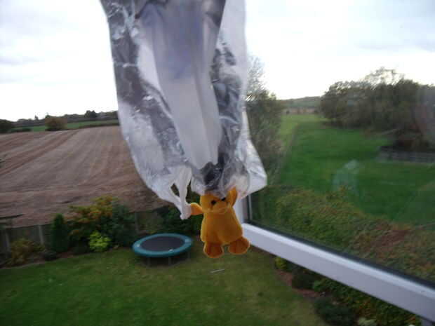 Cómo hacer un paracaídas para un juguete de peluche. (5 / 5 paso)