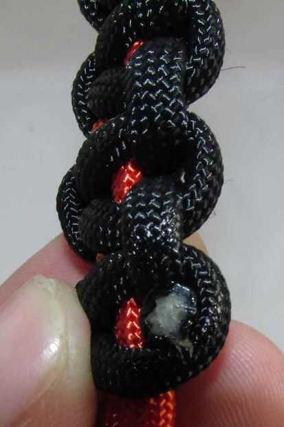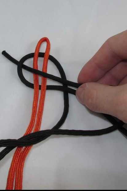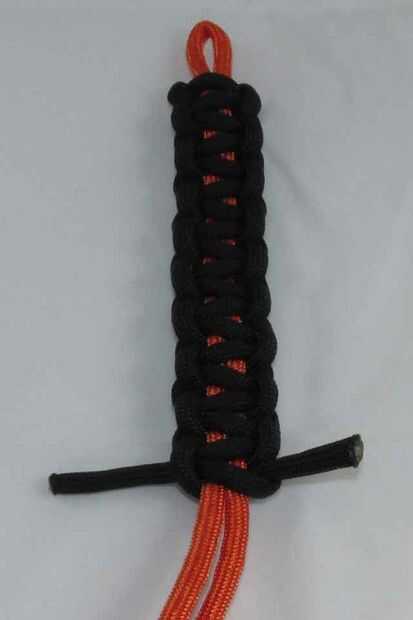 La técnica para hacer la pulsera es muy sencilla. Tenemos un núcleo hecho de un pedazo de paracord doblado por la mitad (en el tutorial que estará representado con el color naranja). La pieza negra del cordón será nuestro cable de trabajo. Para hacer el patrón de la pulsera, se alternan haciendo el nudo a cada lado de la pulsera.