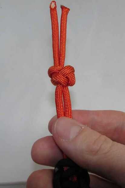 El nudo que vamos a hacer se llama el nudo de la cobra y "haciendo un cuatro", luego hacer el nudo. Esta acción se representa mejor una vez que veas el tutorial que sigue. Termine la pulsera con la técnica de nudo y lazo. El nudo pasado, esférico se llama un nudo de diamante o cuerda de seguridad. Aprende a hacer uno en http://www.paracordguild.com/. Es un nudo esencial saber!