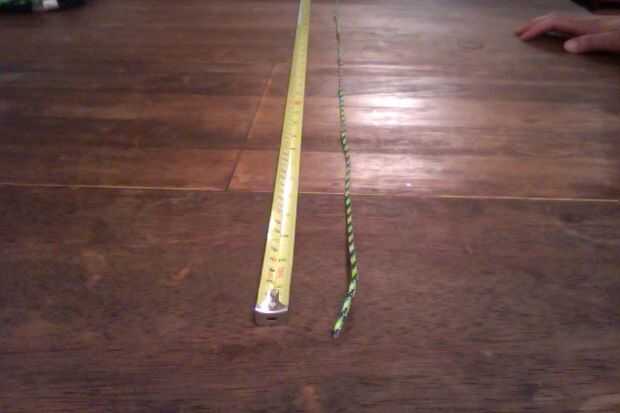 Si has comprado una resma de 50 pies de paracord para hacer esta parte de la eslinga, tienes un pedazo de cadena que es más largo que los otros. No flipar... le habrán un montón sobrantes para el proyecto.