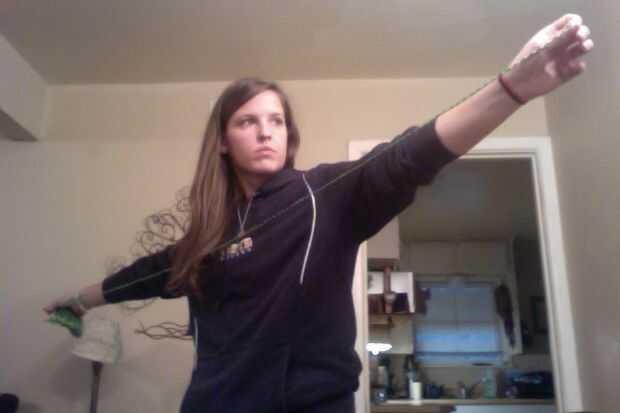 Usando su "brazo a brazo" envergadura como una estimación de 5 pies, tome el extremo de la cuerda en una mano y tire de la cuerda al otro extremo de su envergadura (se muestra en la foto de arriba). Si haces esto tres veces, aproximadamente debe tener un pedazo de 15 pies de cable. Clip final y utilice su primera pieza de 15 pies como guía para cortar el resto de la cadena. (Si tienes brazos largos... ten cuidado. Su envergadura será mucho mayor. Sea inteligente acerca de él!)
