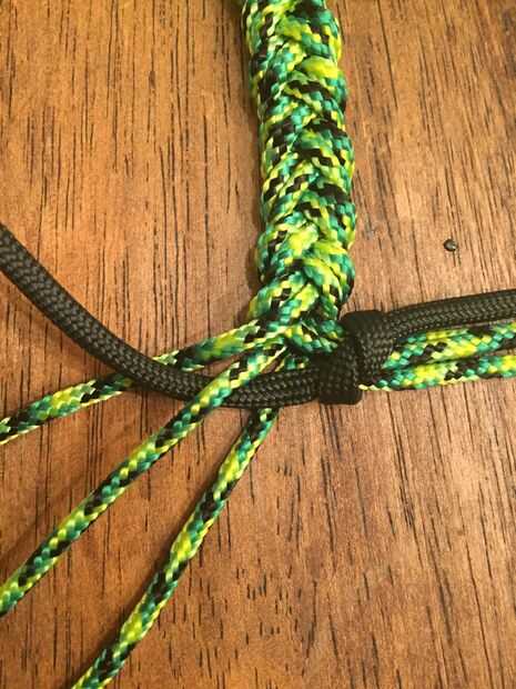 Cuando el cable hacia abajo de la longitud adecuada, dejar de trenzado y los seis filamentos se dividen en dos haces de tres hilos.