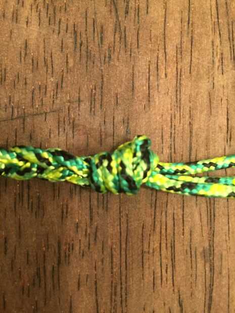 El último nudo de tope debe ser lo suficientemente grande como para que se puede mantener apretado. Un nudo muy sencillo, pero hay unos cuantos más nudos más de lujo (como un nudo de globo) que son el más bonita que mirar.