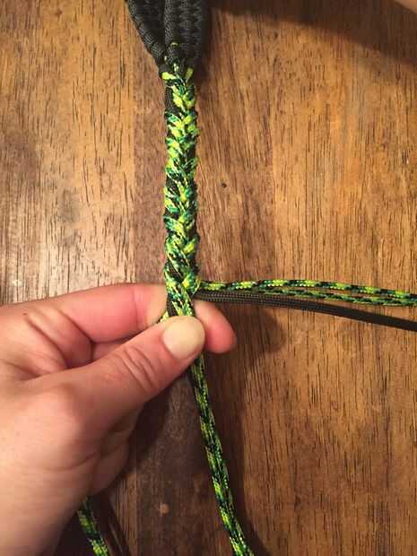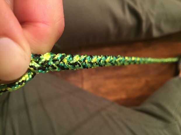 Finalmente, usted tendrá tres vertientes izquierda. Trenzar el resto de la cuerda de lanzamiento para que coincida con la longitud de la cuerda hacia abajo.