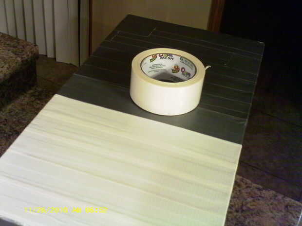 Los cuadros de extremo a extremo y empezar a grabar en el medio y su forma de trabajo hacia el exterior. La cinta más utilizas el más difícil el paso va a ser. Cubrí mi paso dos veces mas hasta que mi esposa decidió que quería blanco, por lo que consiguió una tercera aplicación y ahora parece ser indestructible. Después de grabar se terminó había doblado cuatro o cinco piezas de longitud de caja de la cinta había conectado a la parte inferior del paso y asegura un pedazo de forro del cajón. Esto hizo que el paso sea seguro para que no deslice mientras está en uso.