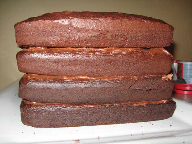 Mayoría de las veces terminará con un pastel que tiene una leve joroba, donde el centro es más alto que los bordes. Si no eliminas esta joroba antes de Asamblea hará inestable la torta y no será tan sólida cuando vayas a tallarlo.