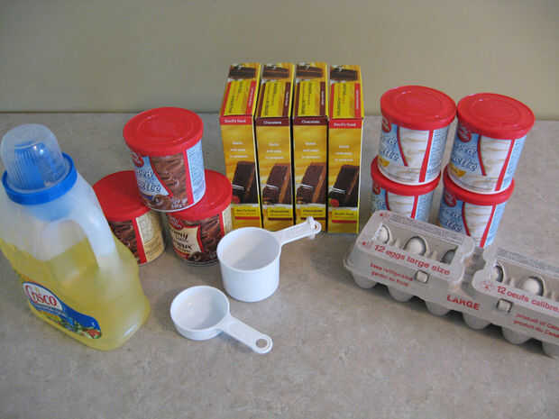 Ya que este pastel está destinado a la fiesta de cumpleaños un 2 años de edad solo estoy usando mezclas de torta en caja y bañeras de hielo de la tienda de comestibles. Para una fiesta de adultos, o para ser más elegante, yo haría la receta desde cero. De cualquier manera que tendrá sobre la misma cantidad.