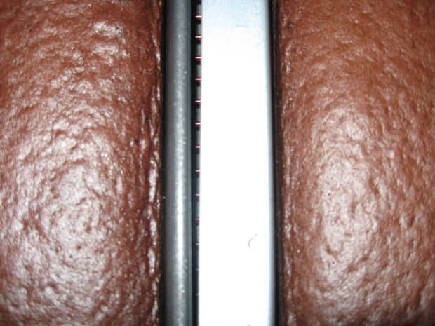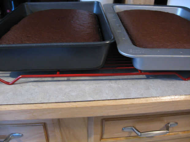 Esta receta dice 35-40 minutos para hornear un pastel de 9 x 13. Mina salió en 34 minutos (que era tal vez un minuto más de lo que debería haber esperado).