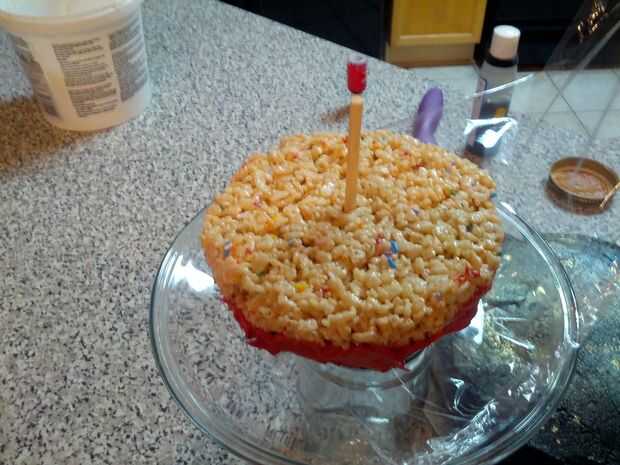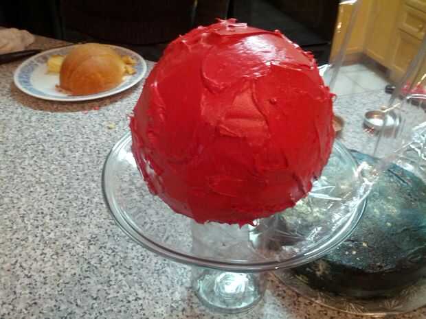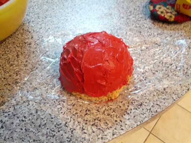 3. Mezcle 4 tazas de glaseado rojo gel suave color y aplican con una espátula de metal.