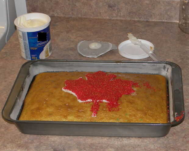 Cuando se retira la plantilla, usted debe han ligeramente levantadas hoja de arce roja en el centro de la parte superior de la torta.