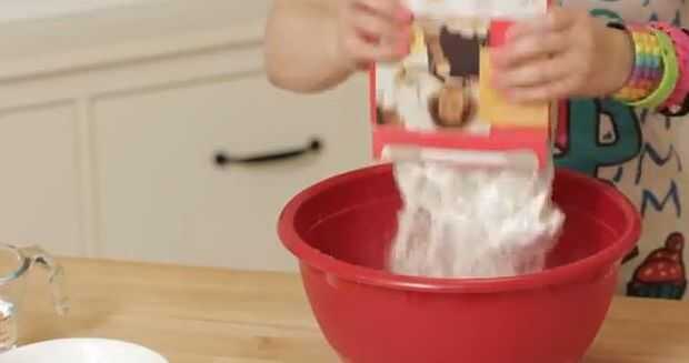 Descarga el todo pastel se mezclan en el recipiente. Añadir una taza de agua. No olvides los huevos y el palo de mantequilla así!