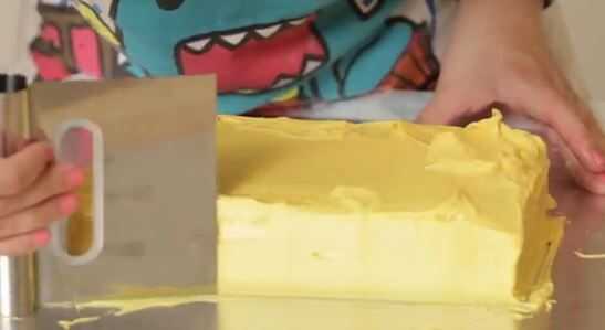 Una vez que se corta, es tiempo de lo heladas. Necesitará dos capas de betún. Aplicar la primera capa por lo que no es quebradiza más. Poner en la nevera durante 20 minutos después de la segunda. Utilizar cualquier color que usted hizo. Para hacer el pastel glaseado agradable y suave tendrá un glaseado suave. Poner la tarta en la nevera para el glaseado se endurezca.