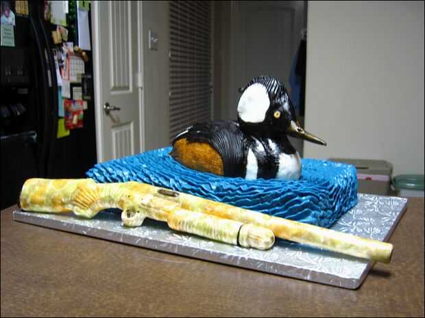 Hice una torta de hoja trimestre solo para ser utilizado como el "agua" y trata de un doble lote de Rice Krispie® para hacer el pato.