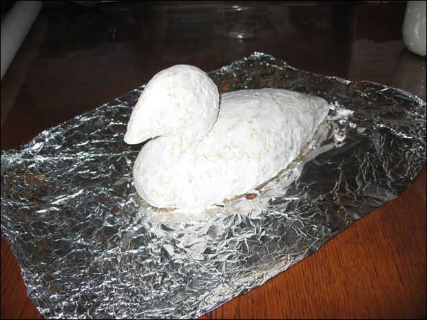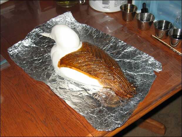 Luego, porque sería difícil acceso después de que empecé a añadir las capas siguientes, siguió adelante y había pintado las plumas en una mezcla de alimento marrón color y vodka.