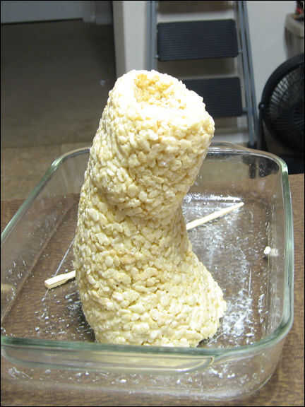 Primero hice un doble lote de arroz Krispies trata. Solo usé la receta de la caja, pero usted puede encontrar aquí: http://ricekrispies.com/#/recipes/the-original-treats