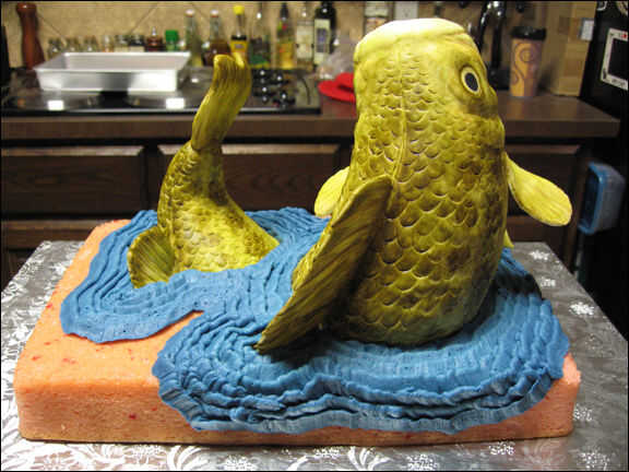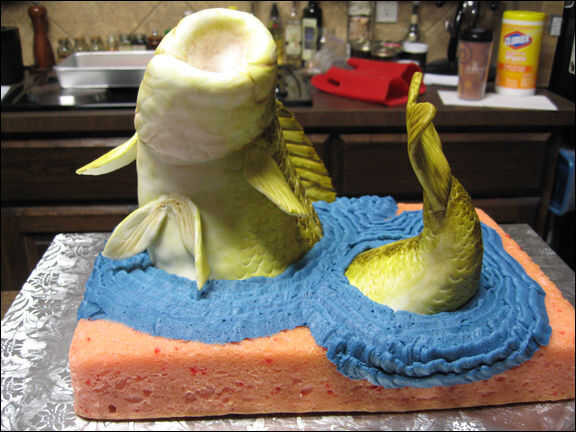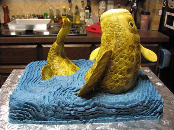 yo vivo en el agua con el glaseado de crema de mantequilla con punta de pétalo #104. Comencé con las piezas de pescado y mantenido va alrededor y alrededor y alrededor.