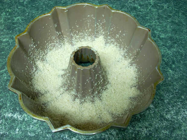 Distribuida uniformemente las nueces 1/2 taza picada en el fondo de la cacerola de Bundt.