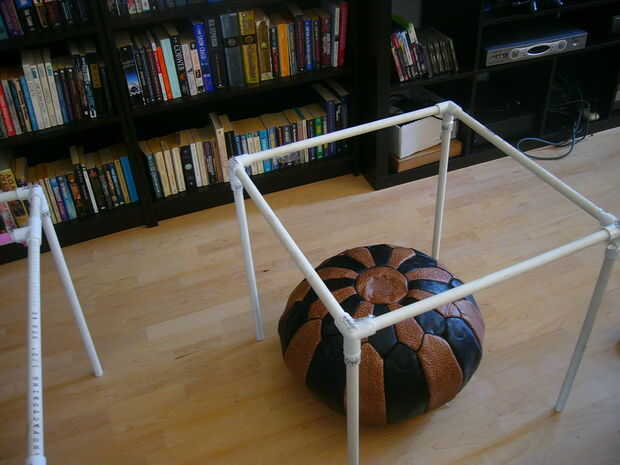 Ahora, fije una longitud de 3' a uno de los tees ortogonales (que tiene una longitud de 2' ya conectada). Conecte el otro extremo de la tubería a otro t. Repetir este proceso una vez más con sus otros dos tee/2 ' pares de tuberías.