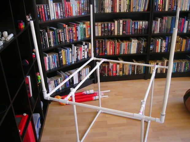 Comience con el nivel inferior. Comience conectando una longitud de 6" a una camiseta. A continuación, conecte una longitud de 2' al otro lado. Adjuntar otra t al final de la 2' y terminar con otro 6" pieza en el otro extremo del tee. Hacer esto 3 veces más.