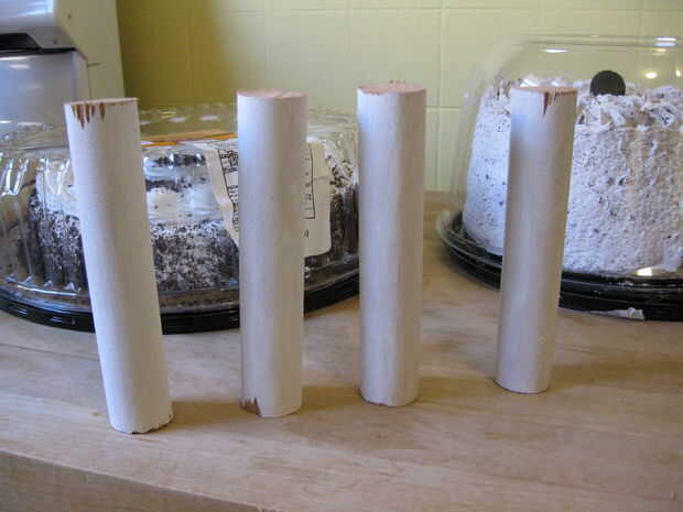 Después de que se seque, medida de la altura que desee los pilares que, además de la profundidad de la torta para obtener una altura total.