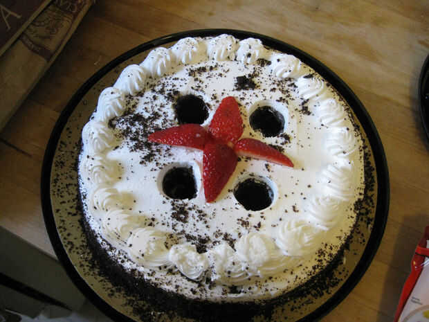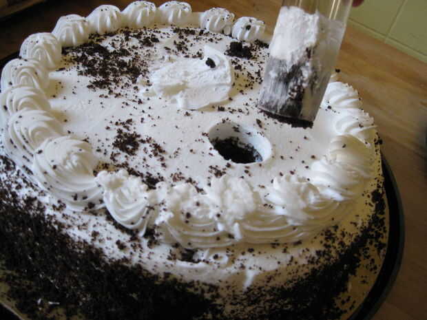 Corte los orificios introducir el tubo de plástico, tocar fondo y girando, entonces sloooooowly tirando de la torta.