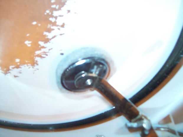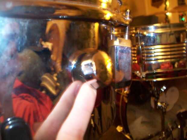 a continuación, tienes que aflojar el amortiguador dentro del tambor, desde el exterior. Simplemente gire la perilla fuera de la cáscara hasta que el amortiguador no toque la cabeza. Este paso es en caso de tenia en la cabeza del tambor de humedecimiento.