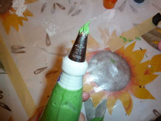Utilizar una nueva bolsa con glaseado y poner ya sea una punta de hierba o, si no tienes uno (o si usted perdió como yo) una punta de estrella.