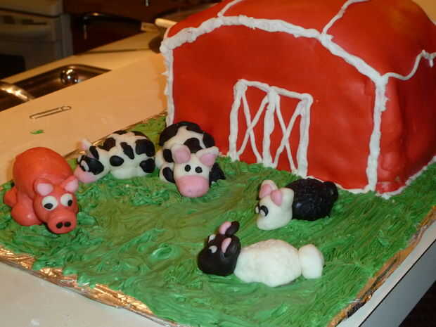 Poner los derretimientos en el bolso de helar y tubo los bordes del granero y el "césped", dejando pequeños espacios donde los animales van de frente. Trate de ir rápidamente para que no endurezcan los derretimientos. Iba tan rápido que no tengo tiempo para tomar fotos, lo sentimos! Pero he aquí algunas buenas fotos del parque terminado!