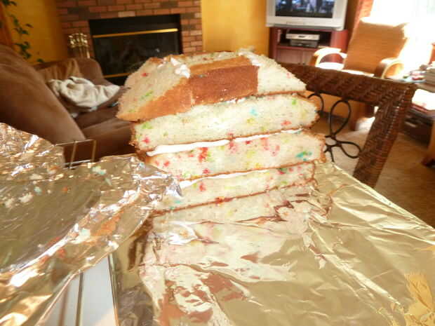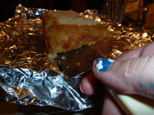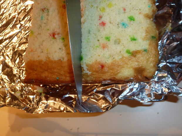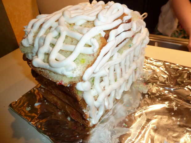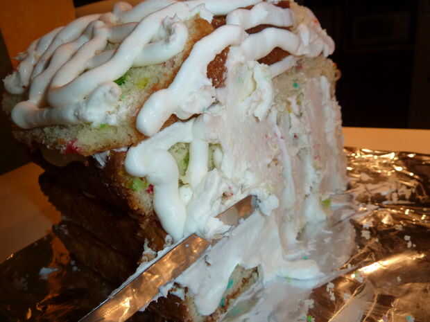 Con la 2.3 sección, corte el pastel diagonal (como en la foto!) para crear dos partes de un techo inclinado.