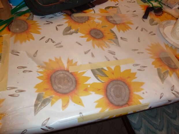 Cubierta donde vas a trabajar con papel de cera, mantenidos por cinta adhesiva.