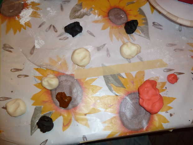 Separar la arcilla de caramelo en partes, disponiendo tal ves qué colores que usted necesita para sus animales.