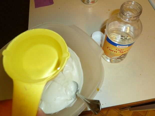 Cuando ellos están fundidos, mezcla una tercera Copa de jarabe de maíz en el chocolate derretido. Mezclar bien.
