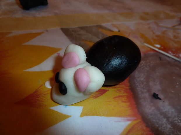 Hacer oídos como los otros animales y pégalos en la cabeza. Fije la cabeza al cuerpo y la cola.