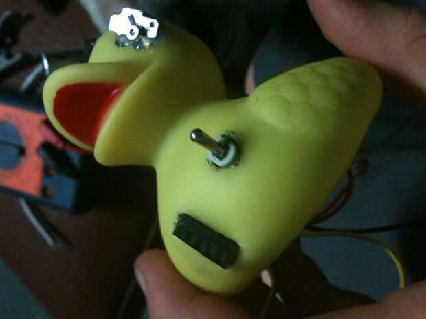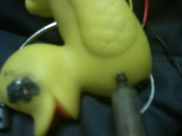 Asegúrese que el interruptor tiene dos cables saliendo de él antes de ponerlo en su lugar. Para colocar en su lugar, derretir un pequeño agujero y empuje el interruptor por el interior a la salida como en la foto.