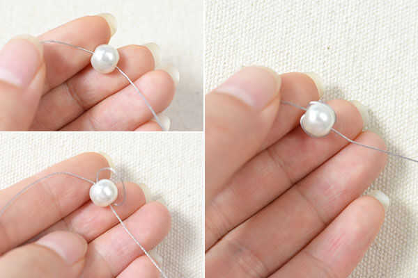 1 º cortar un trozo de unos 50cm cola de tigre, un grano de la perla blanca 8mm en la parte media de la cadena, luego enrosque la cola del tigre izquierdo en el grano de la perla de derecha a izquierda y el hilo del derecha tigre la cola en el grano de la perla de izquierda a derecha;