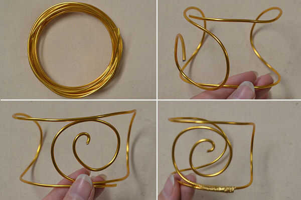 1 º cortar un trozo de unos 60cm y 1,5 mm alambre de aluminio, envoltura en una amplia forma de manguito y asegúrese de que hay dos lazos en la parte media;