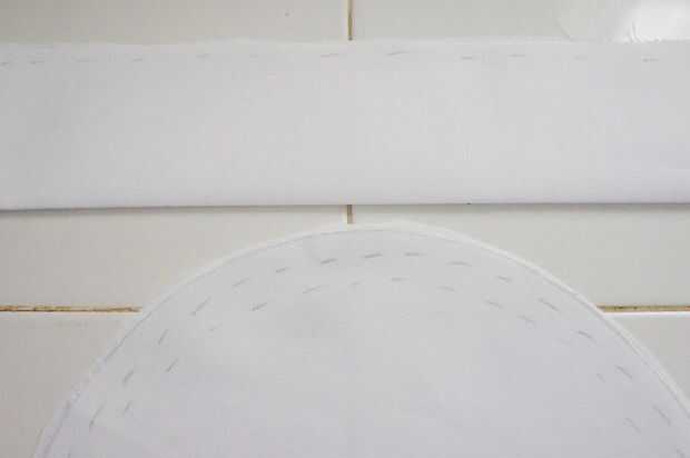 Ahora sería el momento de planchar la entretela a la pieza de tela redondo en el lado equivocado de una sola pieza. Si usas tela de peso ligero.