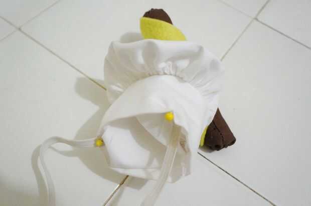 Para la correa usé elástico así que sería fácil de poner en el animal con poco revuelo. La próxima vez que haga uno voy a usar un elástico más amplia porque creo que encajaría en la cabeza un poco mejor.