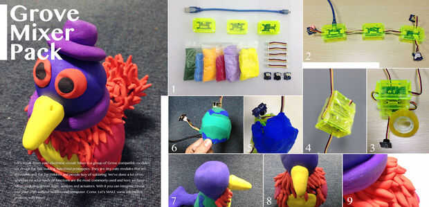 este es un pavo hecho de arcilla y paquete de mezclador de Grove. Disparo y se mueva cuando usted presione su cabeza. El mezclador es una herramienta o un juguete ayudándole a construir su proyecto de forma rápida y fácil. Mira el VIDEO primero.